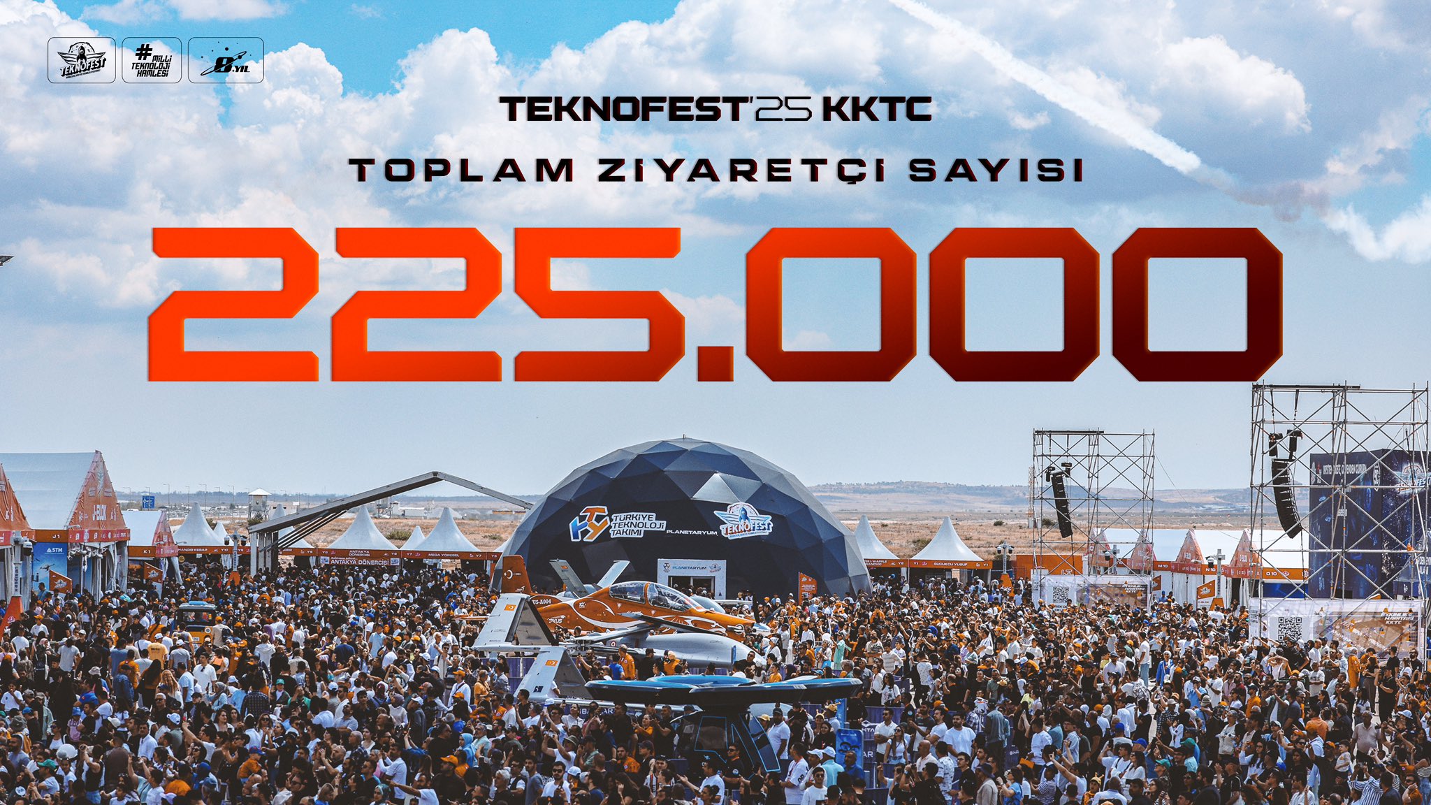 TEKNOFEST Yönetim Kurulu Başkanı Selçuk Bayraktar, TEKNOFEST KKTC’ye 225 bin ziyaretçinin geldiğini duyurdu. Bayraktar, “Bizleri en güzel şekilde ağırlayan Kardeş Vatanımıza tüm kalbimle teşekkür ediyorum…” dedi.