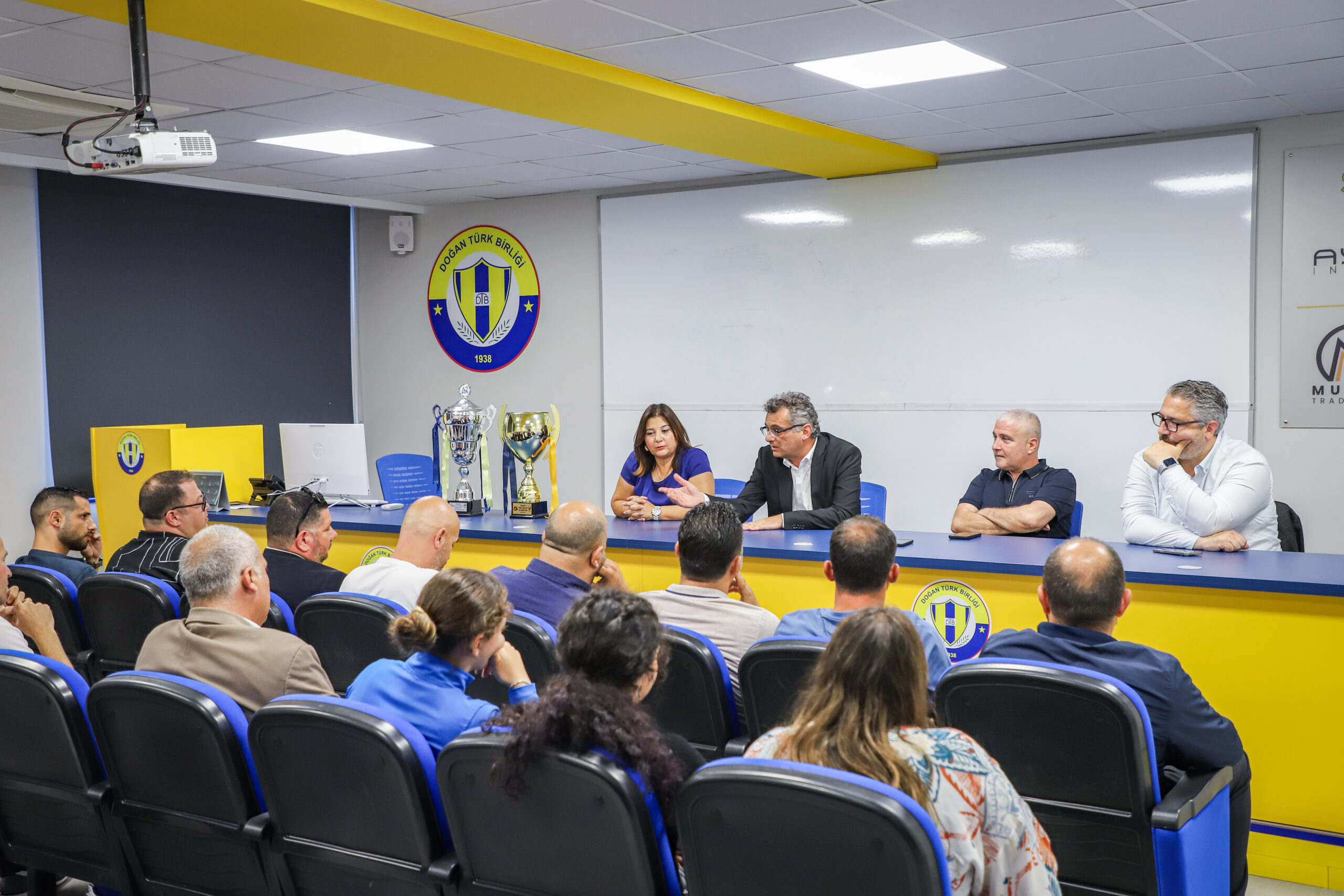 Sporun toplumdaki rolüne dikkat çeken Erhürman, özellikle gençlerin sporla buluşturulmasının önemine vurgu yaptı. DTB Başkanı Bayar Piskobulu da ziyaretlerinden dolayı Erhürman’a teşekkür etti, çalışmalarına kararlılıkla devam edeceklerinin altını çizdi. Tufan Erhürman, DTB Kadın Futbol Takımı’nın ve A2 Takımı’nın elde ettiği başarılardan dolayı kulübü kutladı.