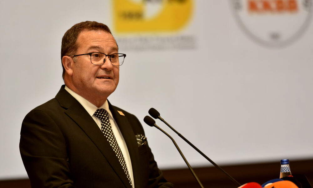 KTTO Başkanı Turgay Deniz ve Kuzey Kıbrıs Bankalar Birliği Başkanı Olgun Önal, “Türkiye ve Dünya Ekonomisindeki Gelişmeler ve Gelecek Vizyonu” başlıklı konferansın açılışında konuşma yaptı.