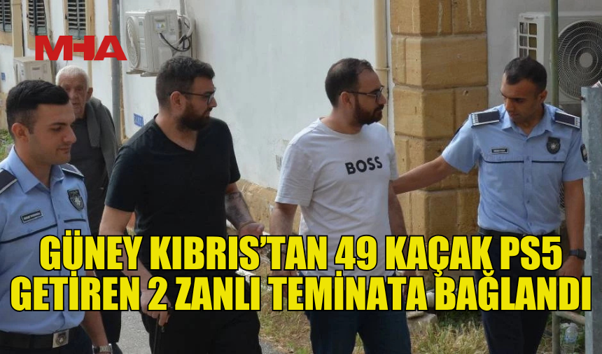 Ülkemize Güney Kıbrıs’tan kaçak olarak getirmeye çalıştığı 49 adet Sony Playstation 5 model oyun konsolları ile yakalanan zanlılar Andreas Vrachimis ve Georgios Olympios yeniden mahkeme huzuruna çıkarıldı.