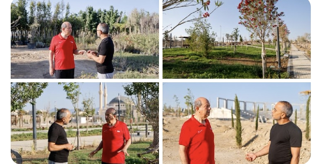 Cumhurbaşkanı Ersin Tatar, Cumhurbaşkanlığı Yerleşkesi yanında bulunan yapımı devam eden parkı ziyaret etti.