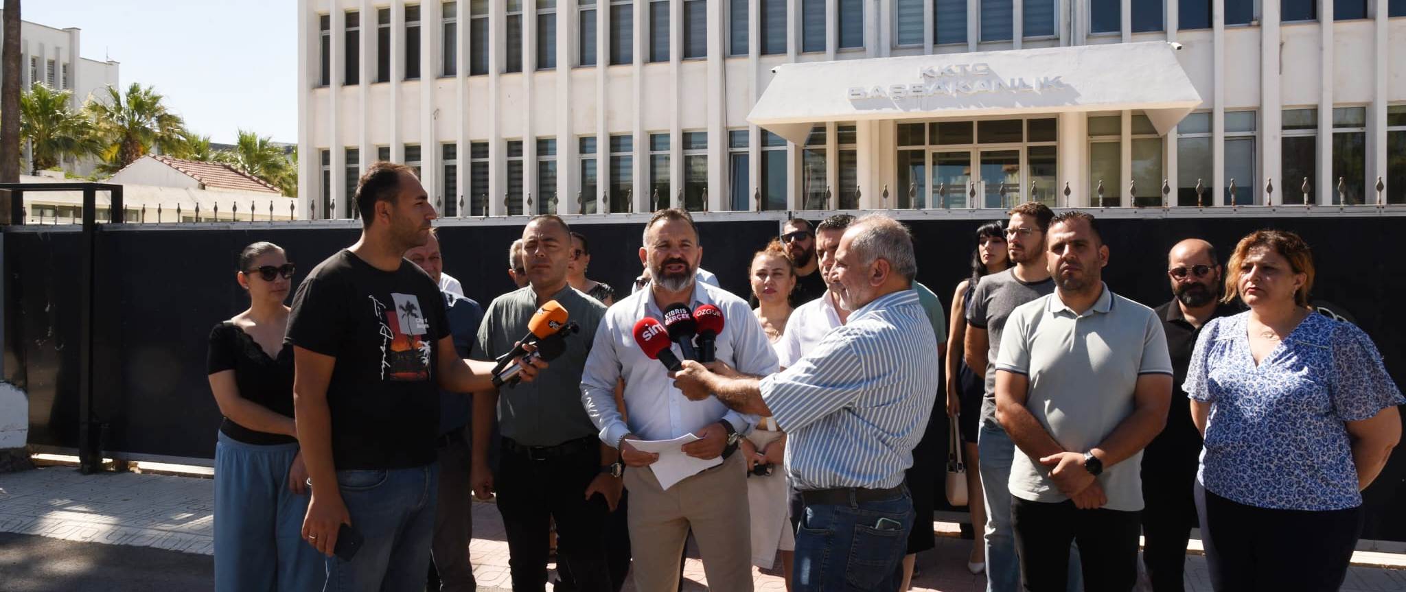 Kıbrıs Türk Amme Memurları Sendikası (KTAMS) ve Kıbrıs İşçi ve Emekçi Sendikaları Federasyonu (KİEF) Başkanı Güven Bengihan, iki örgütün yetkilileriyle birlikte Başbakanlık önünde açıklamalarda bulundu.