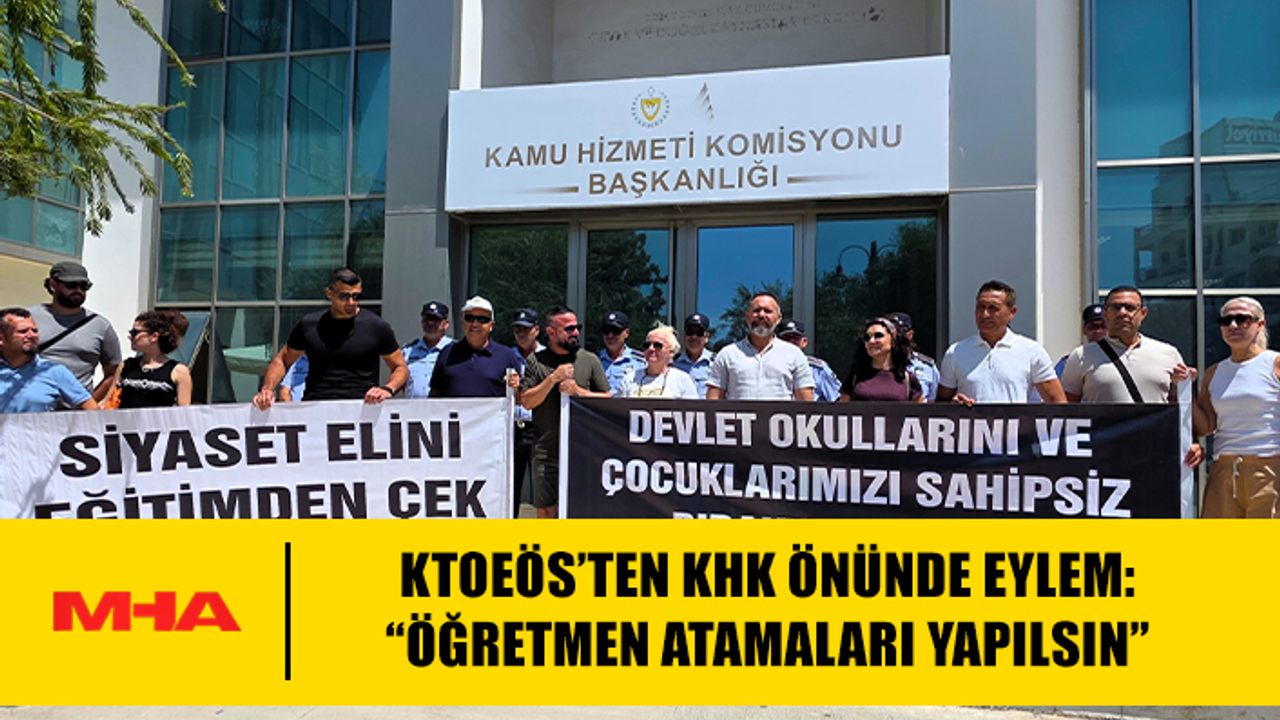 Kıbrıs Türk Orta Eğitim Öğretmenler Sendikası (KTOEÖS), seçim yasakları gerekçe gösterilerek öğretmen atamalarının yapılmamasını protesto etmek amacıyla bugün Kamu Hizmet Komisyonu (KHK) önünde eylem yaptı.