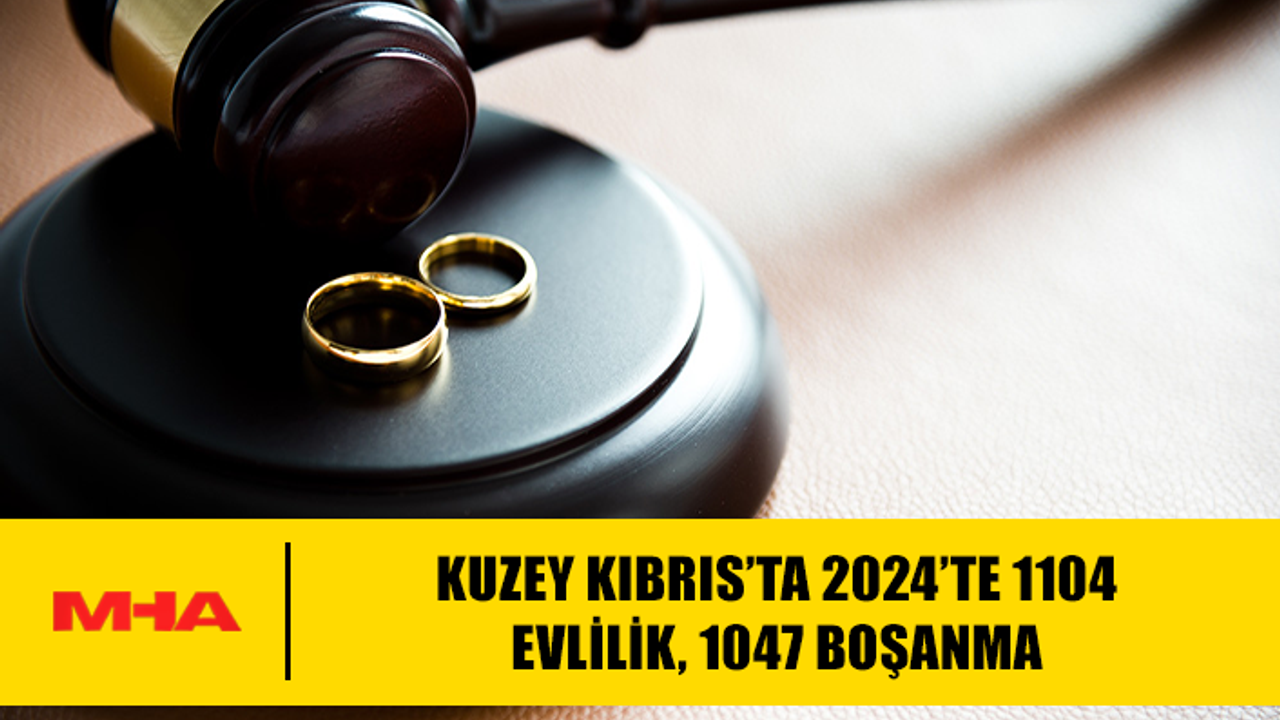 Kuzey Kıbrıs’ta 2024 yılında 1104 çift evlenirken, 1047 çift boşandı. Mahkemelerin 2024 yılı Faaliyet Raporu’na göre, boşanmalarda bir önceki yıla kıyasla yüzde 8,80 oranında düşüş yaşandı.