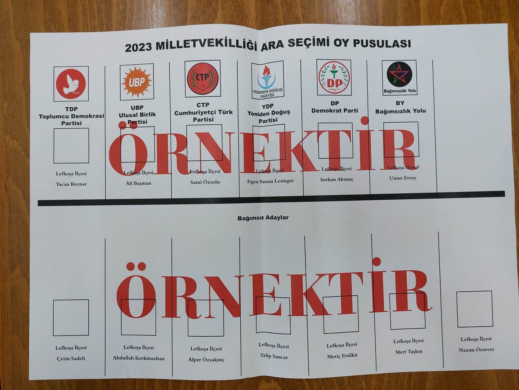 Bağımsız adayların sıralaması ise “Çetin Sadeli-1; Abdullah Korkmazhan-2; Alper Özsalınç-3; Talip Sancar-4; Meriç Erülkü-5; Mert Taşkın-6; Nazım Özsever-7” şeklinde olacak.