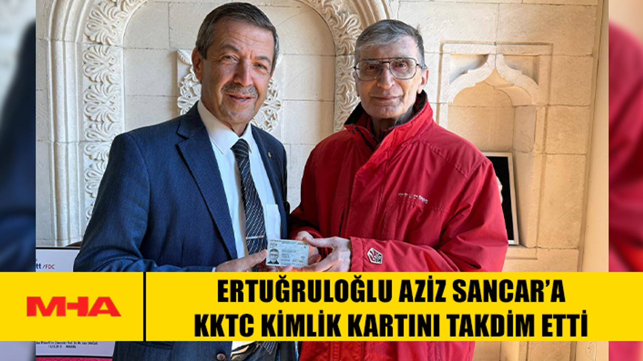 ERTUĞRULOĞLU AZİZ SANCAR’A KKTC KİMLİK KARTINI TAKDİM ETTİ