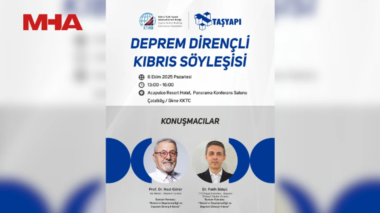 KTİMB’den yapılan açıklamaya göre, Kıbrıs’ın depremselliği ve depreme dayanıklı yapılar, Türkiye’den Yer Bilimci ve Deprem Uzmanlarından Prof. Dr. Naci Görür ve İstanbul Teknik Üniversitesi (İTÜ) İnşaat Fakültesi Öğretim Üyesi, Deprem Dirençli Yapılar Uzmanı Dr. Fatih Sütçü’nün sunumu ile masaya yatırılacak.