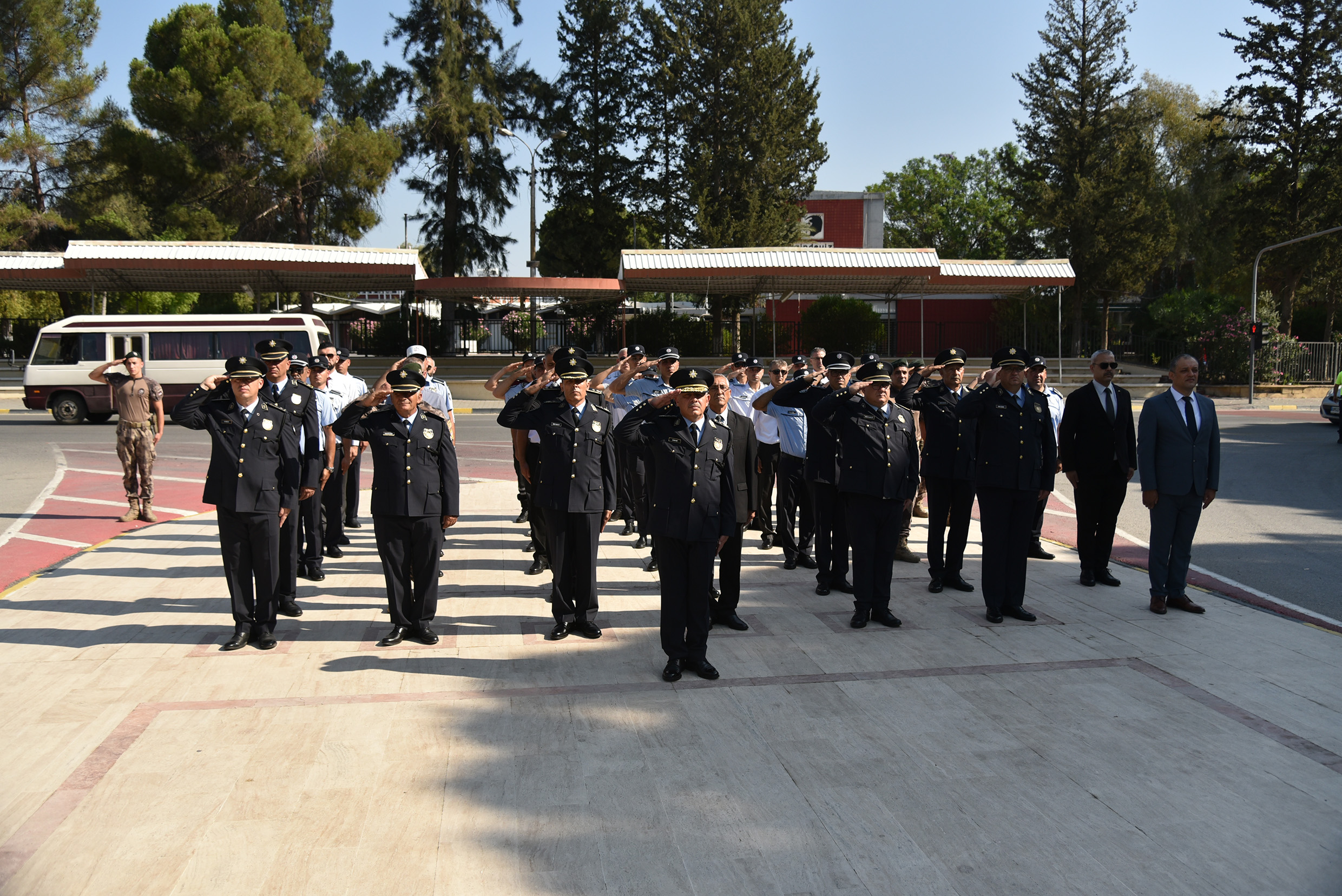 Polis Genel Müdürü Kasım Kuni başkanlığındaki polis heyeti bu sabah ilk olarak 09.00’da Atatürk Anıtı’na, ardından da Dr. Fazıl Küçük Anıtı ile Kurucu Cumhurbaşkanı Rauf Denktaş’ın kabrine çelenk sundu.