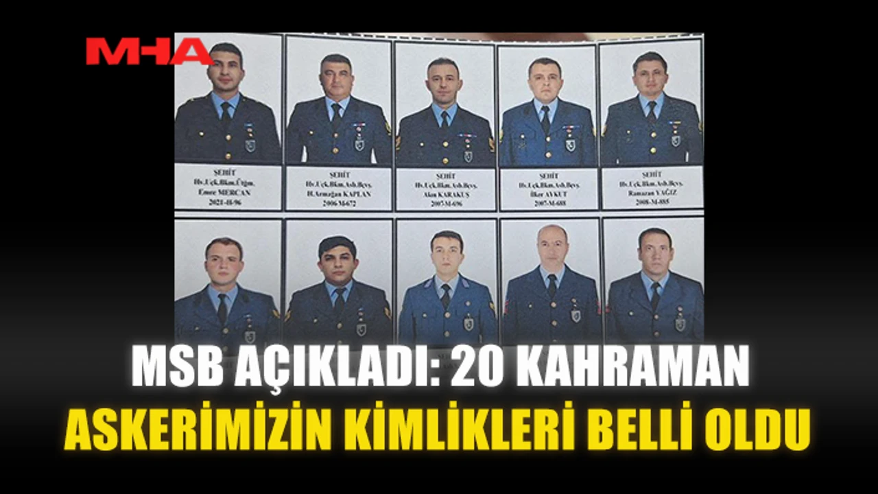 Türkiye Milli Savunma Bakanlığı (MSB), Gürcistan-Azerbaycan sınırında düşen C130 tipi askeri kargo uçağında bulunan 20 personelin şehit olduğunu açıkladı. Arama kurtarma çalışmalarının ardından şehitlerin kimlikleri belirlendi.