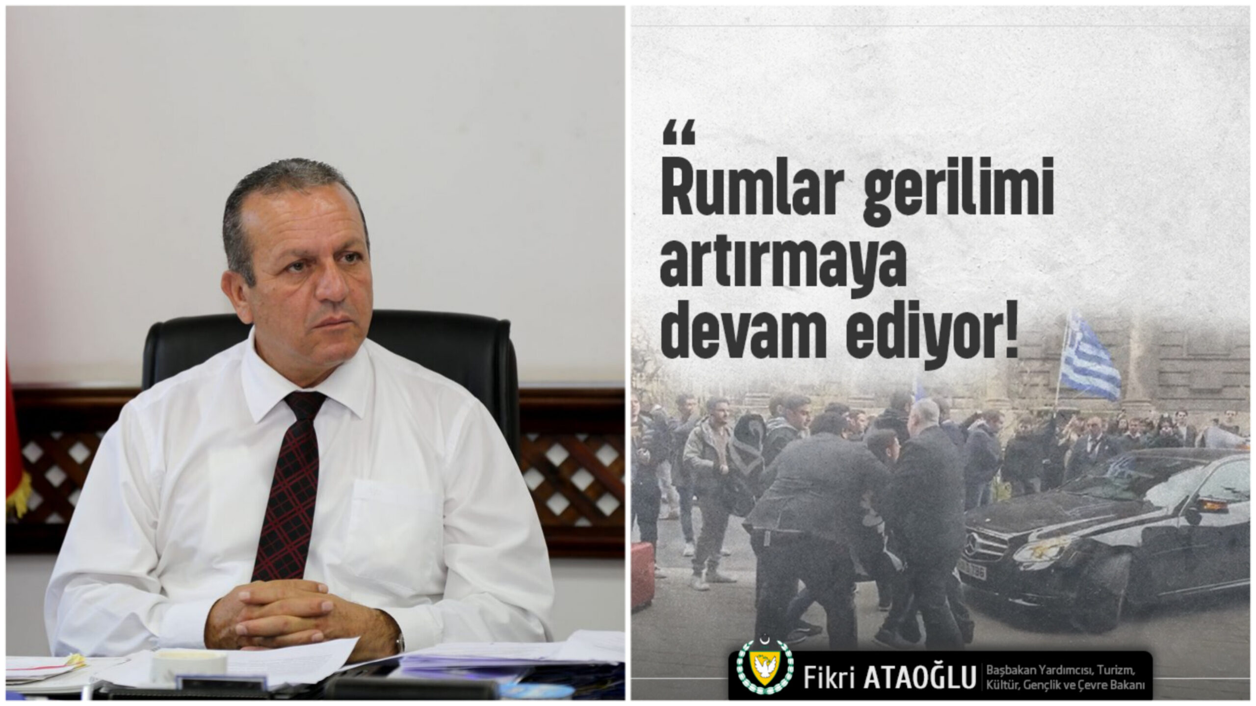 Başbakan Yardımcısı, Turizm, Kültür, Gençlik ve Çevre Bakanı Fikri Ataoğlu, İngiltere’de temaslarını sürdüren Cumhurbaşkanı Ersin Tatar‘a yapılan çirkin saldırı nedeni ile açıklamada bulundu.