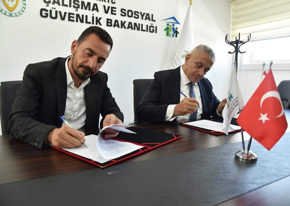 Çalışma ve Sosyal Güvenlik Bakanlığı’nda yer alan protokol imza töreninde, Çalışma ve Sosyal Güvenlik Bakanı Hasan Taçoy ile Kıbrıs Türk Barolar Birliği Başkanı Hasan Esendağlı imza koydu.