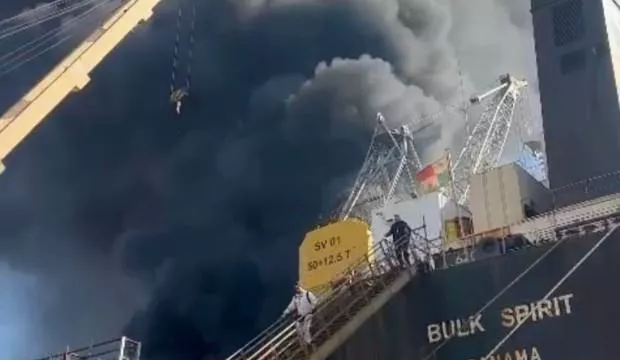 İstanbul’un Tuzla ilçesinde özel bir tersanede bakıma alınan yük gemisinde çıkan yangına itfaiye ekipleri müdahale ediyor.
