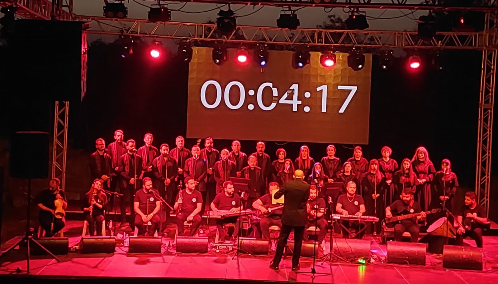 Yaklaşık bir saat sahne alan Antakya Medeniyetler Korosu, tüm şarkılarını Şampiyon Melekler Takımı ve depremde hayatını kaybedenler için seslendirdi.