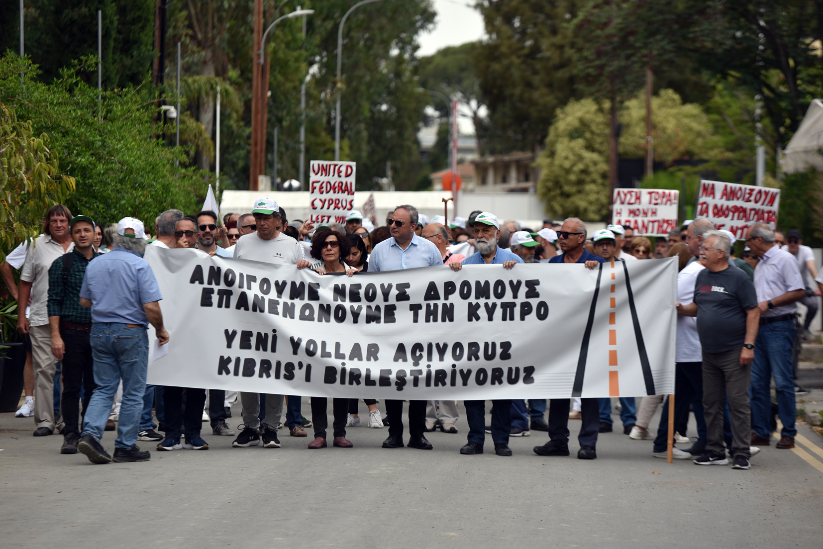 Eyleme katılan Kıbrıslı Türk örgütler Lokmacı kapısında toplanarak “Yeni Yollar Açıyoruz, Kıbrıs’ı Birleştiriyoruz” yazılı pankart taşıyarak, Dayanışma Evi’ne yürüdü.