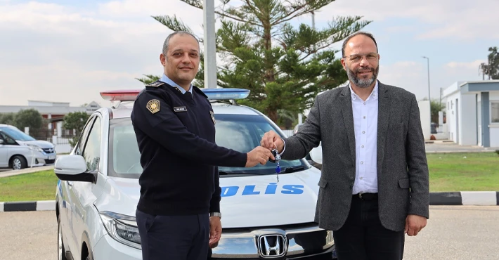 İskele Belediye Başkanı Hasan Sadıkoğlu başkanlığındaki İskele Belediye Meclisi, İskele Polis Müdürlüğüne bir araç hibe etti.