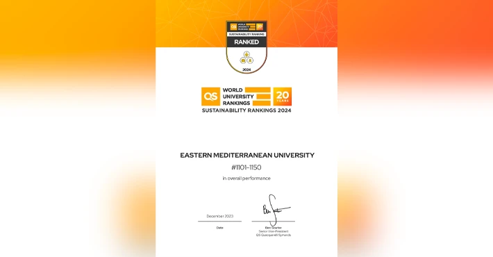 QS Dünya Üniversiteler Sıralaması: Sürdürülebilirlik 2024 listesinde 1101-1150 bandında yer alan DAÜ’nün en yüksek puan aldığı alanlar Çevresel Araştırma, Eşitlik ve Sağlık & Refah oldu. DAÜ’ye başarı sertifikaları QS Kıdemli Başkan Yardımcısı Ben Sowter’in imzasıyla iletildi.