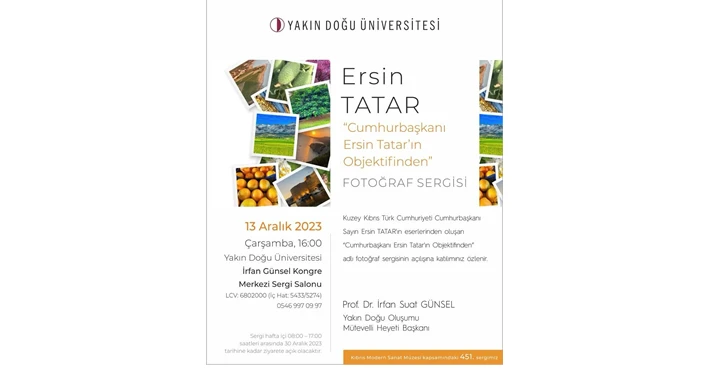 Yakın Doğu Üniversitesi İrfan Günsel Kongre Merkezi Sergi Salonu’nda yer alan “Cumhurbaşkanı Ersin Tatar’ın Objektifinden” isimli fotoğraf sergisi açılışı saat 16.00’da yapılacak.