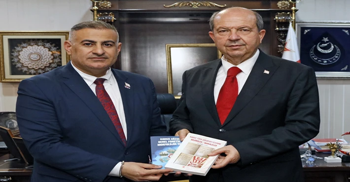 Cumhurbaşkanlığı Özel Kalem Müdürü, araştırmacı yazar, akademisyen Dr. Çağın Zort, Kıbrıs Türk yazı arşivlerine kazandırdığı kitapları Cumhurbaşkanı Tatar’a takdim etti.