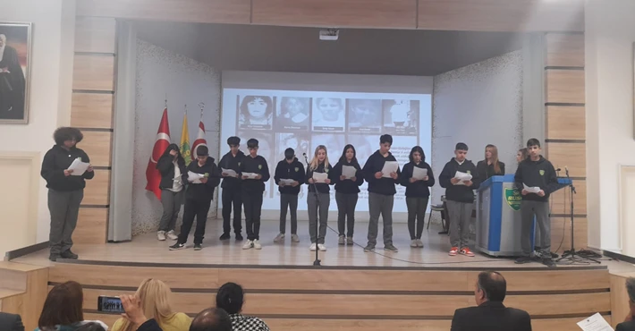 Şehit Hüseyin Ruso OrtaokuluTürkçe öğretmenlerinden Figen Doğan’ ın hazırlayıp sunduğu anma töreni saygı duruşu ve İstiklal Marşı’nın okunması ile başladı . Törende açılış konuşmasında okul müdürü Ergin Mazharoğlu Kıbrıs Türk halkının bu topraklarda başı dik, onurlu yaşayabilmesini aziz sehitlerimize borçlu olduğumuzu belirtti.Daha sonra  günün anlam ve önemini belirten konuşmayı okulu öğretmenlerinden Aliye Kafaoglu  dile getirdi. Düzenlenen Anma töreni okulun yeni yapılan Konferans Salonunda öğrencilerin şiir dinletileri ardından , özgürlük ve milli mücadele temalı oratoryo sunumu ile tamamlandı.