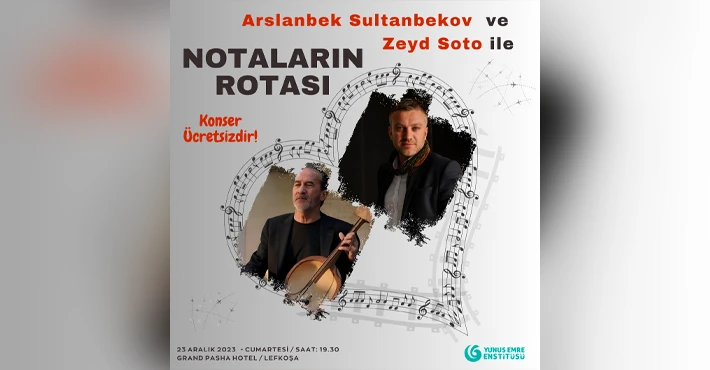 Yunus Emre Enstitüsü’nden yapılan yazılı açıklamada, Nogay Türk’ü ünlü dombra sanatçısı Arslanbek Sultanbekov ve Bosnalı ünlü müzisyen Zeyd Şato tarafından verilecek konserlerin ilkinin 22 Aralık Cuma günü saat 17.30’da Girne Uluslararası Final Üniversitesinde; ikincisinin ise 23 Aralık Cumartesi günü saat 19.30’da Lefkoşa Grand Pasha Otel’de icra edileceği kaydedildi.