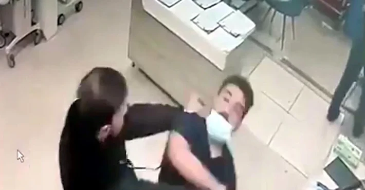 İddiaya göre, eşinin çıkarılmasına sinirlenen Hüseyin A., tartıştığı hemşire Emrah T.’ye yumruk attı.
