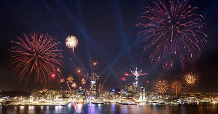 Yeni Zelanda yeni yılı, KKTC saati ile 13.00’te, Auckland Harbour Bridge üzerinde ışık gösterisi ve Auckland Sky Tower’da havai fişek gösterisi ile karşıladı.