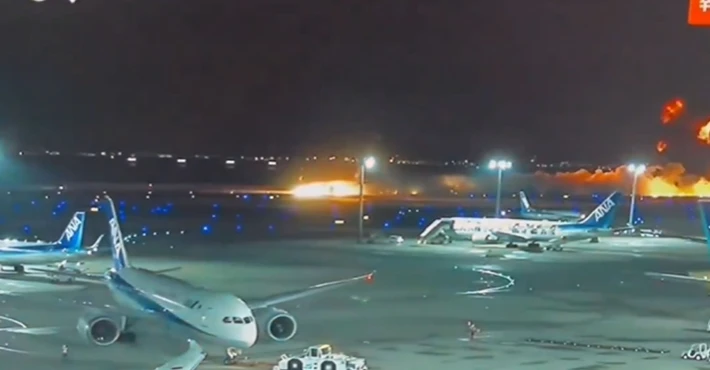 New Chitose Havalimanı’ndan kalkan Japan Airlines’ın 516 sefer sayılı Airbus A350 uçağı, Haneda Havalimanı’na inerken bir Japonya Sahil Güvenlik uçağıyla çarpıştı.