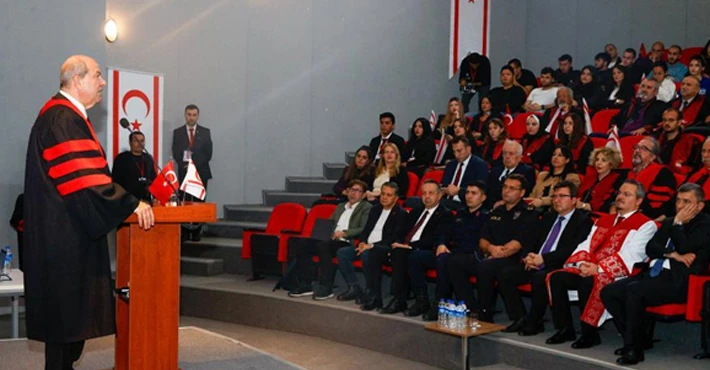 Törende konuşan Ersin Tatar, üniversiteye teşekkür ederek sözlerine başladı