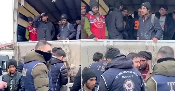 Erzurum – Erzincan kara yolu Tercan uygulama noktasında durdurulan kamyonun kasasından Türkiye’ye yasa dışı yollarla giriş yapan Afganistan uyruklu 99 kaçak göçmen çıktı.