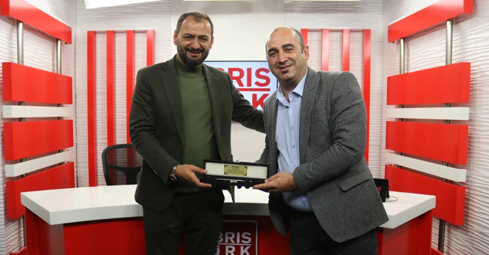 Ziyaret sonunda M.M.T Tunç Group İnşaat’tan direktörü Abdulkadir Tunç Kıbrıs Türk Medya Genel Yayın Yönetmeni Alihan Pehlivan’a hediyeler sundu.