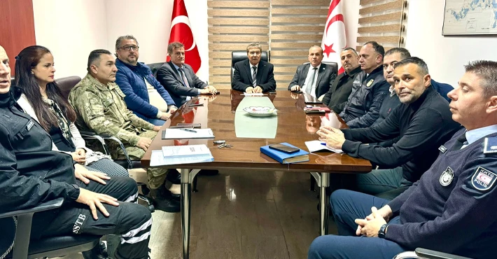 Başbakan Ünal Üstel, bölgeyi etkisi altına alan yoğun yağış ve sel baskınları dolayısıyla toplanan Girne İlçe Emniyet Kurulu toplantısına başkanlık etti.