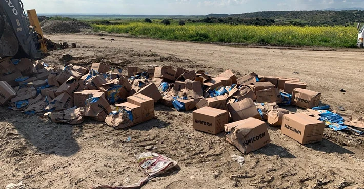 Temel Sağlık Hizmetleri Dairesi Müdürlüğü tarafından İskele Belediyesi Zabıta Birimi’ne teslim edilen ürünler İskele Çöplüğü’nde, İskele Belediyesi Zabıta Birimi’ne bağlı Çevre ve Sağlık Bölümü personelinin gözetiminde imha edildi.
