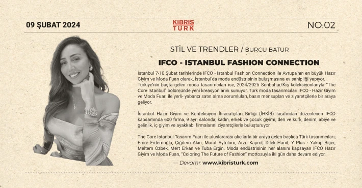 İstanbul 7-10 Şubat tarihlerinde IFCO – Istanbul Fashion Connection ile Avrupa’nın en büyük Hazır Giyim ve Moda Fuarı olarak, İstanbul’da moda endüstrisinin buluşmasına ev sahipliği yapıyor.