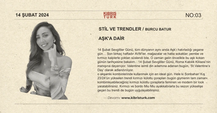 Sevgililer Günü’nün ana rengi elbette ki tutkunun rengi, kırmızı. Kadınlar için bu cesur rengi o akşamki kombinlerinde kullanmak için en ideal gün. Hele ki Sonbahar/ Kış 23/24’ün yükselen trendi kırmızı külotlu çorapları bugün giymenin tam zamanı. Siyah mini bir elbise kombinleyebileceğiniz kırmızı külotlu çoraplarla feminen ve modern bir look yaratabilirsiniz. Kırmızı ve bordo Miu Miu ayakkabılarla bu sezon yükselişe geçen bu trendi de bugün uygulayabilirsiniz. Bu sezonun romantik diğer bir trendi olan saçlardaki siyah ya da kırmızı kurdele tokalarla da daha naif bir hava yaratabilirsiniz. Mob Wife trendinin peluş ya da kürk oversize paltolarıyla da kombininizi tamamlayabilirsiniz.