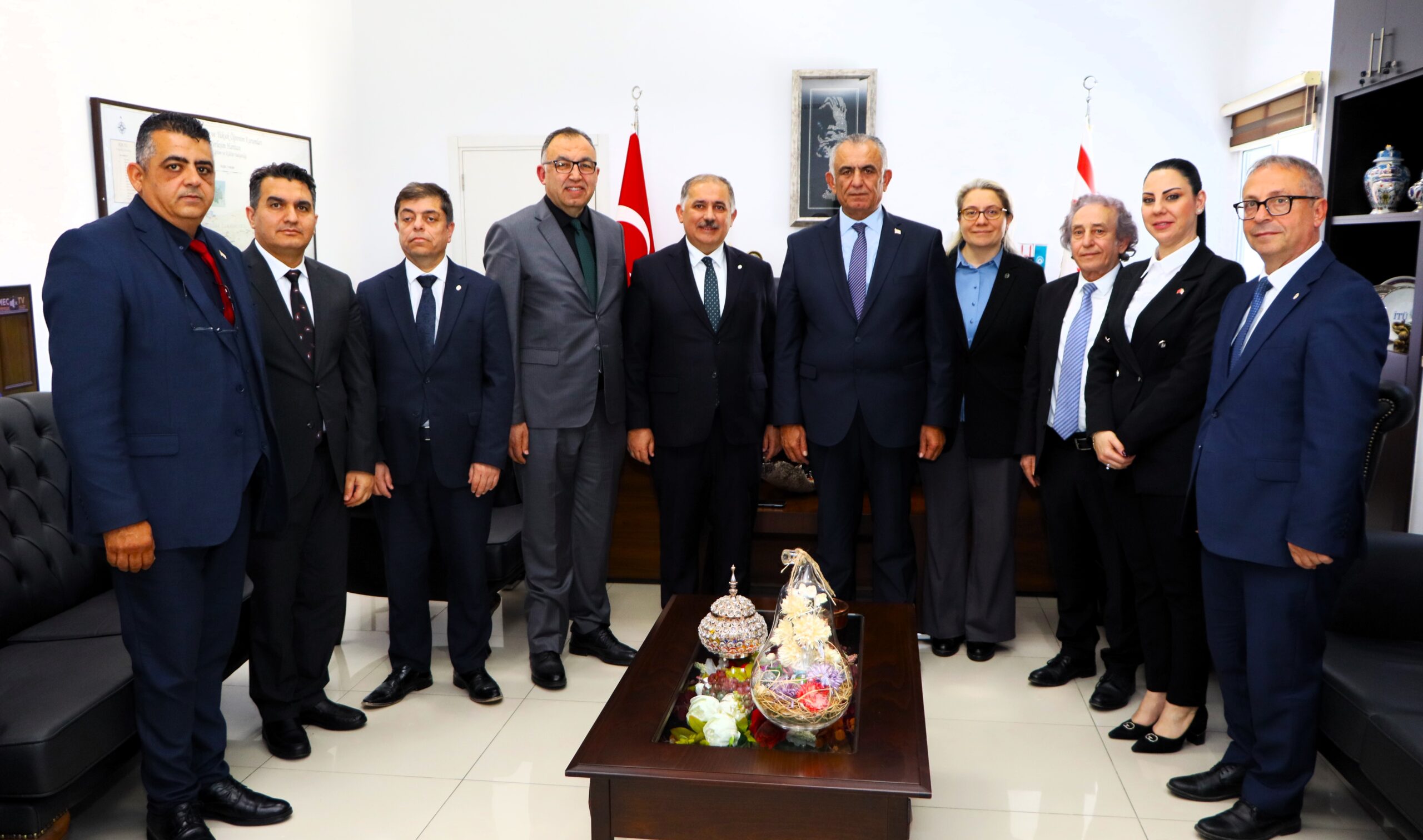 Milli Eğitim Bakanı Nazım Çavuşoğlu, İstanbul Teknik Üniversitesi (İTÜ) Rektörü Prof. Dr. İsmail Koyuncu ve İTÜ KKTC Rektörü Prof. Dr. Murat Sarı ile beraberindeki heyeti kabul etti.