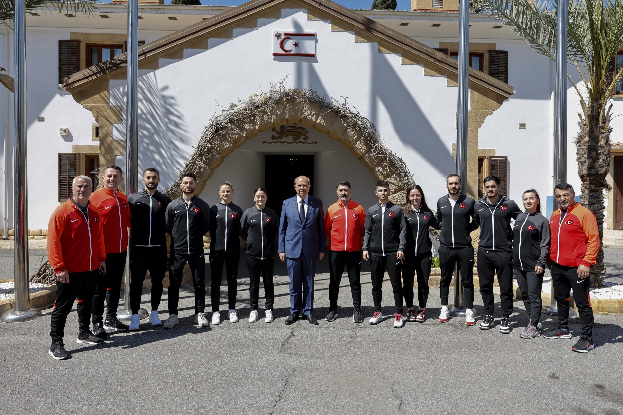 Cumhurbaşkanı Ersin Tatar, Türkiye Karate Federasyonu Başkanı Aslan Abid Uğuz ve beraberindeki heyeti kabul etti.