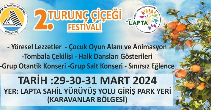 Lapta Alsancak Çamlıbel Belediyesi sosyal medya hesabından 2. Turunç Çiçeği Festivali’nin Lapta Yürüyüş Yolunda başladığını duyurdu.29/30/31 Mart tarihlerinde yapılacak olan festivale tüm halkımız davet edildi.