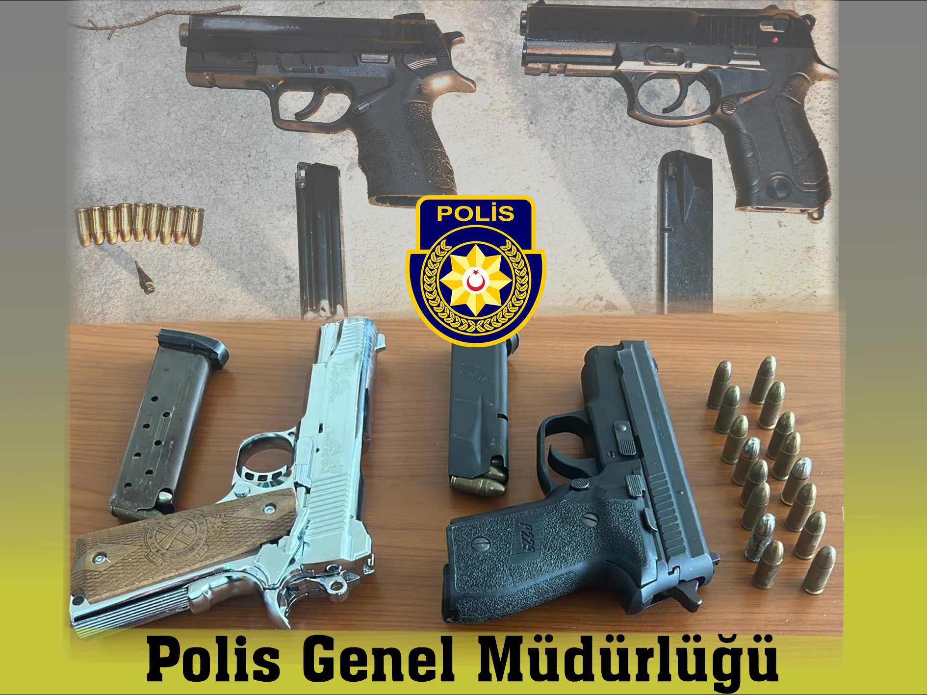Öte yandan Girne’de, Girne Polis Müdürlüğü’ne bağlı CÖŞ ekipleri tarafından K.M.’nin (E-40) kaldığı evde yapılan aramada, 2 tabanca, tabancalara ait 2 şarjör ve 32 canlı mermiyi kanunsuz olarak tasarrufunda bulundurduğu tespit edilerek emare olarak alındı. Açıklamada, K.M. ve mesele ile bağlantısı olduğu tespit edilen S.S.(E-33) ve Ö.K.’nin (E-45) tutuklandığı belirtildi.