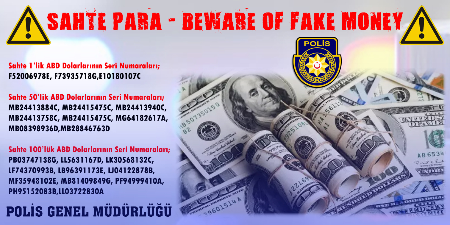 “Söz konusu sahte paralardan daha önceden piyasaya sürülme ihtimali olduğundan, ellerinde belirtilen seri numaraları ile başlayan 1’lik, 50’lik ve 100’lük ABD Doları cinsi para bulunduran; bankalar, döviz şirketleri, finans kuruluşları, marketler ve vatandaşlar ile para alım-satımı ve değişimi yapacak olan kişi ve kurumların dikkatli olmaları, şüpheli gördükleri kişileri ise en yakın polis merkezine bildirmeleri önemle rica olunur.”