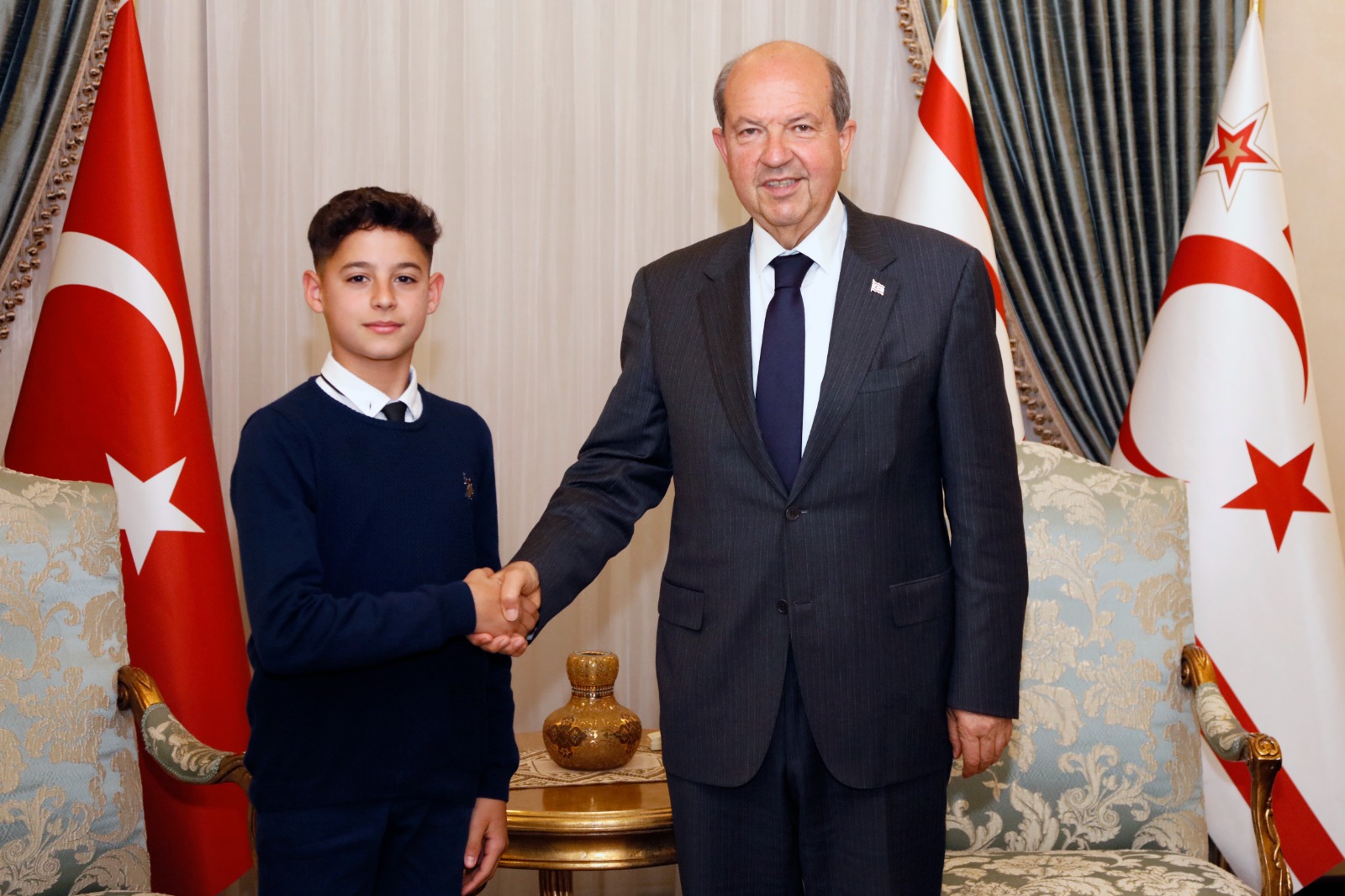 Cumhurbaşkanı Ersin Tatar, karting yarışçısı Hasan Fikri Macila’yı kabul etti.