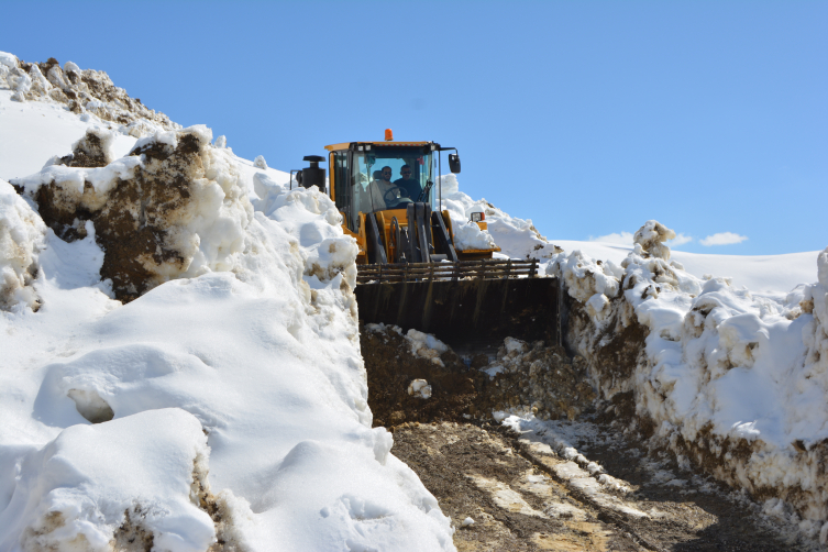 Ekipler, kar kalınlığının yer yer 5 metreye ulaştığı bölgede, iş makineleriyle yolu ulaşıma açmak için çaba gösteriyor.