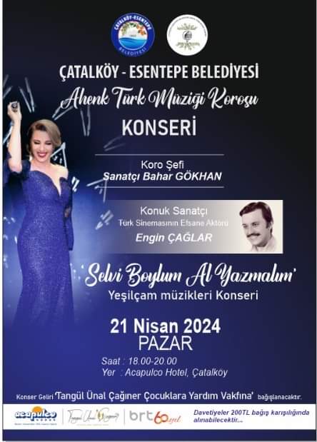 Geliri Tangul Çağıner Çocuklara Yardım Vakfına bağışlanacak konser Şef sanatçı BAHAR Gökhan yönetimindeki Ahenk Türk Müziği korosunun seslendireceği Yeşilçam şarkılarıyla başlayacak ve Yeşilçam Film Hikayeleri Engin Çağlar tarafından sunulacak.Kuzey Kıbrıs ‘ta bir ilk niteliği taşıyan etkinlik 21 Nisan 2024 Pazar günü ACAPULCO Hotel ‘de yer alacak.