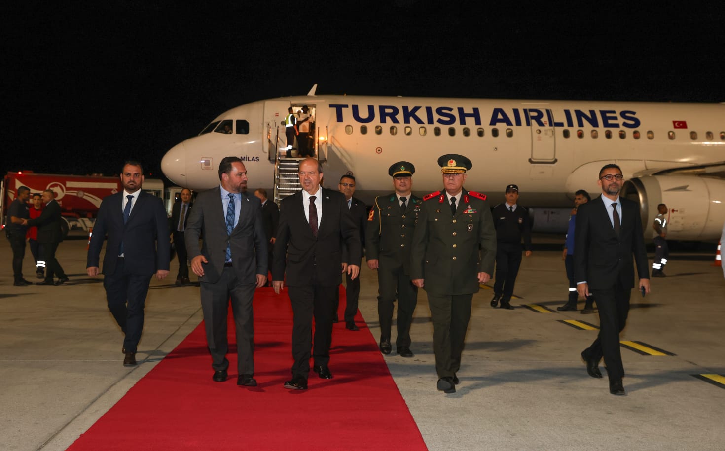 Cumhurbaşkanı Tatar‘ı Ercan’da Tarım ve Doğal Kaynaklar Bakanı Hüseyin Çavuş, Cumhurbaşkanlığı Müsteşarı Okan Donangil ile bazı sivil ve askeri yetkililer karşıladı.