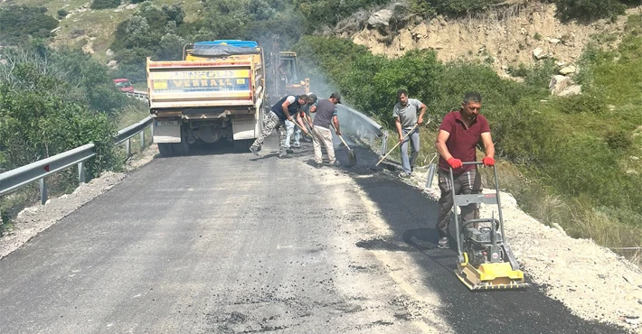 Çalışmalar sırasında yolun hasarlı bölümleri tamir edilirken, gerekli bölümlerde yamalama yapıldı.