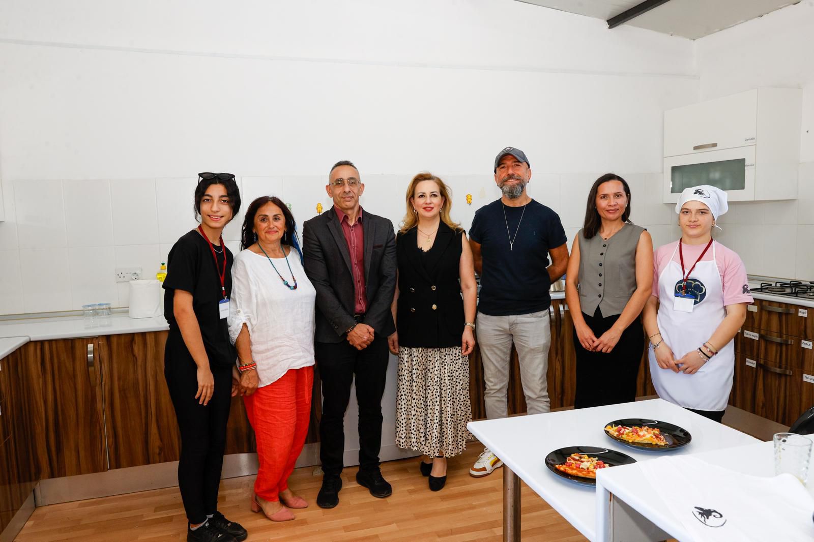 Cumhurbaşkanlığı’ndan yapılan yazılı açıklamaya göre, Sibel Tatar, öğrencilerle birlikte mutfak atölyesinde pizza yaptı.