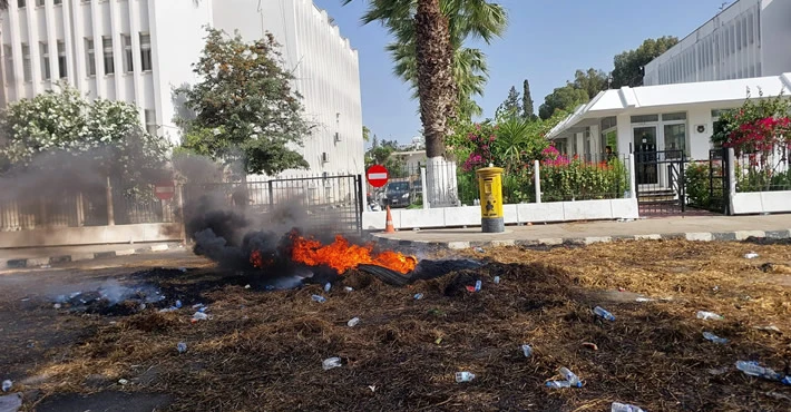 Birlik Başkanı Mustafa Naimoğulları’nın bugün için Başbakanlık kapısına veya duvarına zarar verilmeyeceği sözü nedeniyle saat 15.00’ten sonra eylemde sadece lastik yakıldı.