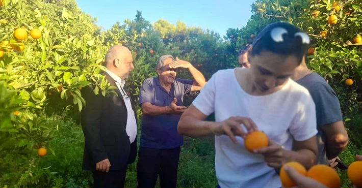 Narenciye üretimi ve üreticinin yaşadığı sıkıntıları yerinde görmek üzere Güzelyurt’a Bağlı Akçay Köyü ziyaretinde Köyün Muhtarı ve üreticilerle bir araya gelerek, sorunları ve neler yapılması gerekliliği için çözüm yollarını konuşuldu, ziyarette İŞAD Yönetim Kurulu Başkanı Enver Mamülcü Yönetim Kurulu Üyeleri ve Kıbrıs Türk Narenciye İhracatcıları Birliği Başkanı Ahmet Ha’stürk, Ziraat Mühendisi İzlem Nizam eşliğinde gözlemlemelerde bulunuldu. Üreticinin gerek hava koşullarının getirdiği gerek yanlış üretim politikalarının etkisi altında olduğu bir sezonda ürünlerin dalında kalarak bir sonraki sezonda daha da vahim bir sonuca ulaşacaklarından bahsedildi. Sezonun başında Güney Kıbrıs Rum Kesiminde görülen Yeşillenme Hastalığı olduğu Kuzey Kıbrıs Türk Cumhuriyetinde Bu Hastalığın hiçbir suretle olmadığını değerlendiren uzmanlar, ülke içerisinde hastalığın var olduğu manipülasyon ile turunçgil ürünlerimizin değerini düşürerek dalında kalmasına sebep verilmiştir. Gelecek yılın meyve tutumu gerçekleşmiş ancak bu sezonun ürünü halen hasat edilmemiştir, bu ağaçların sağlığı bakımından çok vahim etkisi haline gelecek diğer sezonun ürün kalitesi ile rekolteside daha da büyük zararlar doğuracağı anlamına gelmektedir. King mandarin de hasat edilenin ödemesi halen yapılmadı. Yere dökülenin ödemesi yapılacak mı ? Bilinmiyor. Valencia portakalın hasat edilmesi artık pek mümkün görülmüyor. Bakanlar Kurulunun çoktan bu ürünleri ödemek üzere karar üretmesi ve Daireden memurları tesbit için araziye göndermesi gerekirdi. Ödeyeceğiz demek yeterli değildir. Şu an harekete geçmeyerek ve bu kararları üretmeyerek gelecek yılın ürününe ve ağaçlara zarar vermektedirler.