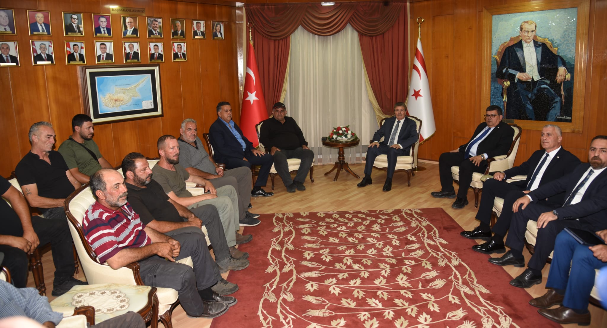 Birlik yetkililerinin randevu talebi üzerine Başbakanlık’ta yer alan görüşmede, Maliye Bakanı Özdemir Berova, Tarım ve Doğal Kaynaklar Bakanı Hüseyin Çavuş, Ekonomi ve Enerji Bakanı Olgun Amcaoğlu ve Başbakanlık DPÖ Müsteşarı Durali Güçlüsoy da yer alıyor.