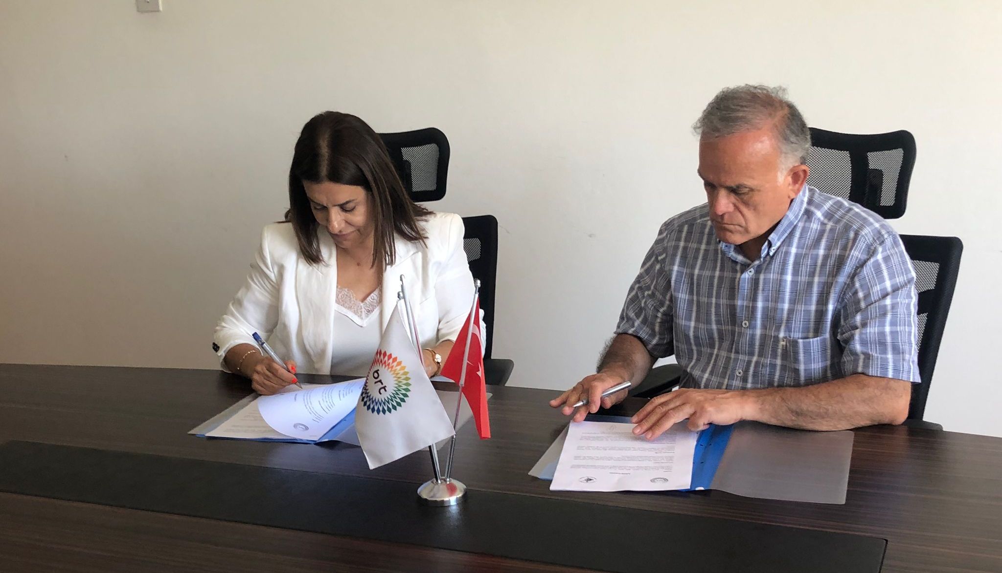 Prokole Bayrak Radyo Televizyon Kurumu Müdürü Meryem Özkurt ve Kıbrıs Türk Tabipleri Birliği (KTTB) Başkanı Dr.Dt. Ahmet Özant imza koydu.