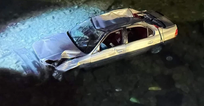 Çarpmanın etkisiyle kontrolsüz bir şekilde yoluna devam eden EP 049 plakalı araç, aydınlatma direğine çarpıp 3,40 metre yükseklikten denize düştü.